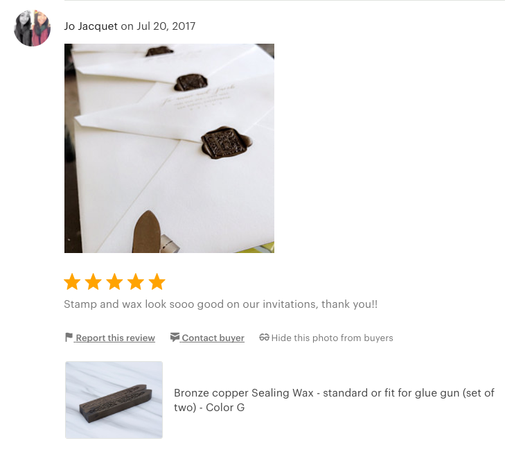 Very happy with our custom seal ordered. They add sophistication to our wedding invitations. (Etsy)